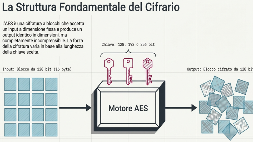 La soluzione più immediata, e anche la più diffusa, è la cifratura. Ed è qui che entra in gioco uno degli algoritmi più importanti della sicurezza informatica: l’AES.