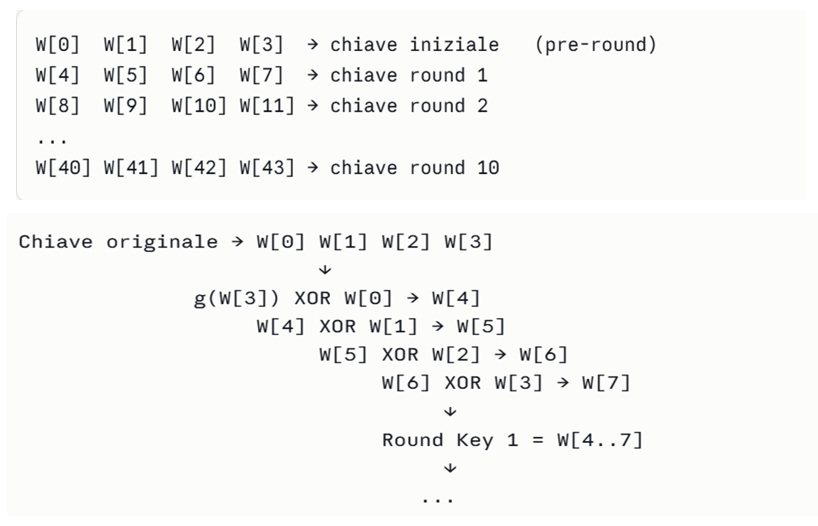 AES lavora su blocchi da 128 bit, organizzati in una matrice. Su questa struttura vengono applicate diverse trasformazioni: