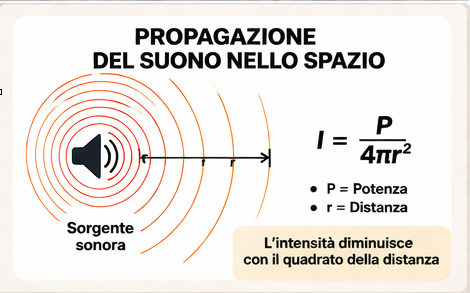 Quando un segnale (come il suono) si propaga, la sua intensità diminuisce con la distanza.
