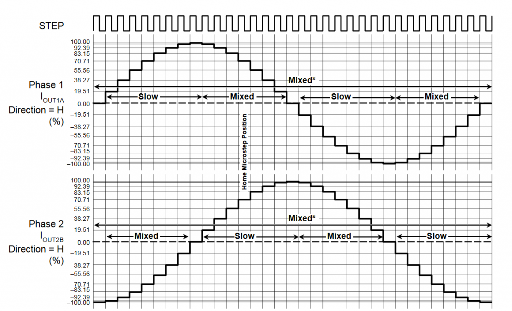 Ad ogni transizione dell’ingresso, da basso ad alto, si genera il timing  per far  ruotare il motore di un passo o micro passo, in funzione degli ingressi MSx.
