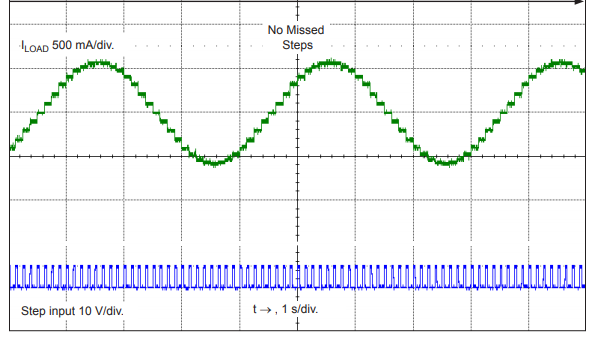 Per terminare il discorso legato  alle micro rotazione, ho riportato di seguito, in Figura 3, in cui è rappresentato il grafico delle correnti nelle due fasi, quando pilotiamo il motore facendogli eseguire dei micro passi. Possiamo osservare che, ogni fase ha una corrente in modulo diversa, in questo modo,  la forza risultante che incide sul rotore determinano l’angolo di rotazione del motore, funzione delle singole componenti  forza, prodotte dai campi magnetici delle due fasi.