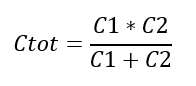 Ad esempio, nel caso di due condensatori in serie da 60 nF e 100 nF, con una tensione massima di lavoro di 100 V ciascuno, il condensatore equivalente avrà una capacità di 37,5 nF e una tensione massima di lavoro di 200 V (la somma delle tensioni massime dei singoli condensatori).
