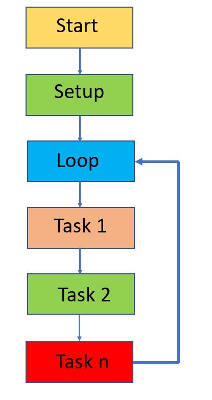 Se si scrive un codice senza utilizzare un sistema operativo come FreeRTOS, l’elaborazione delle istruzioni avverrà in modo sequenziale, ovvero una istruzione dopo l’altra, come indicato nella figura di seguito.